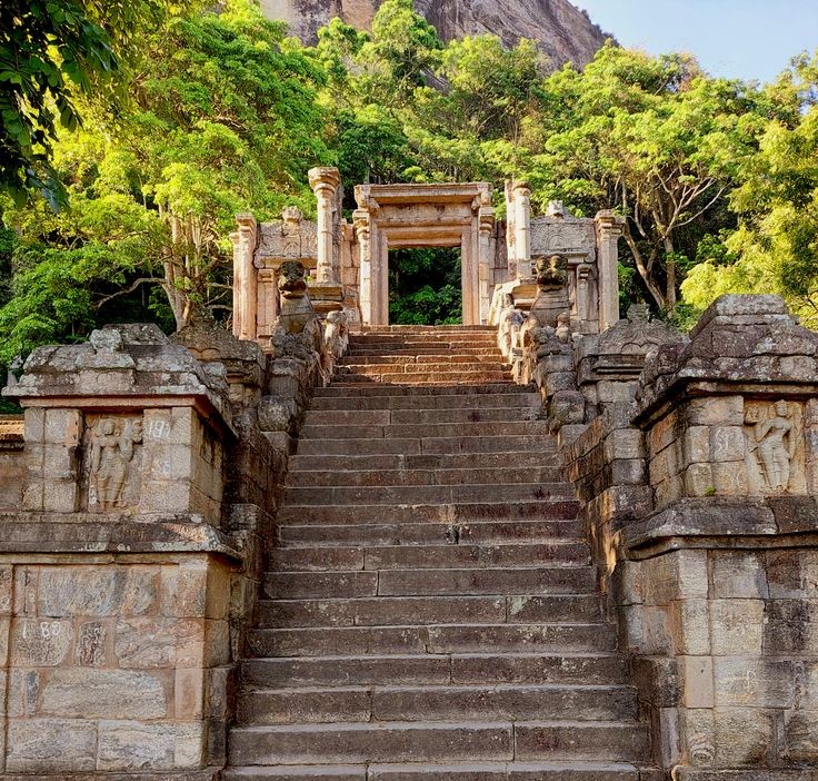 Mihintale, near Anuradhapura in Sri Lanka's North Central Province, is revered as the birthplace of Buddhism in the country. Legend holds that it's where Buddhism was introduced in the 3rd century BCE by Mahinda, son of Emperor Ashoka. The site is a pilgrimage destination known for its serene hilltop setting and historical significance. Visitors climb a grand staircase surrounded by lush vegetation to explore ancient ruins, sacred monuments, and meditation caves. Iconic landmarks include the Ambasthala Dagoba and the Mihintale Maha Seya, offering panoramic views. Mihintale also boasts archaeological treasures from the ancient Anuradhapura period. Its natural beauty, including forests and waterfalls, enhances its spiritual ambiance, making it a tranquil retreat for introspection and wildlife observation.